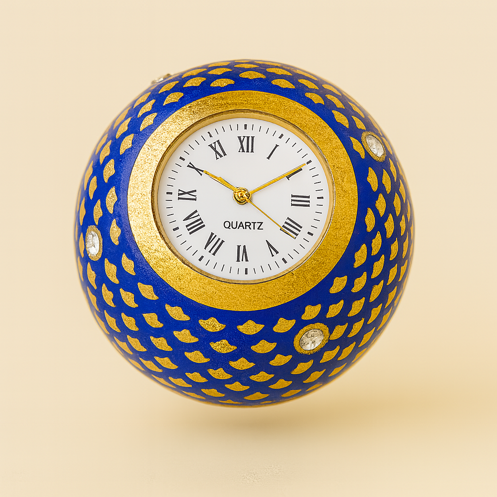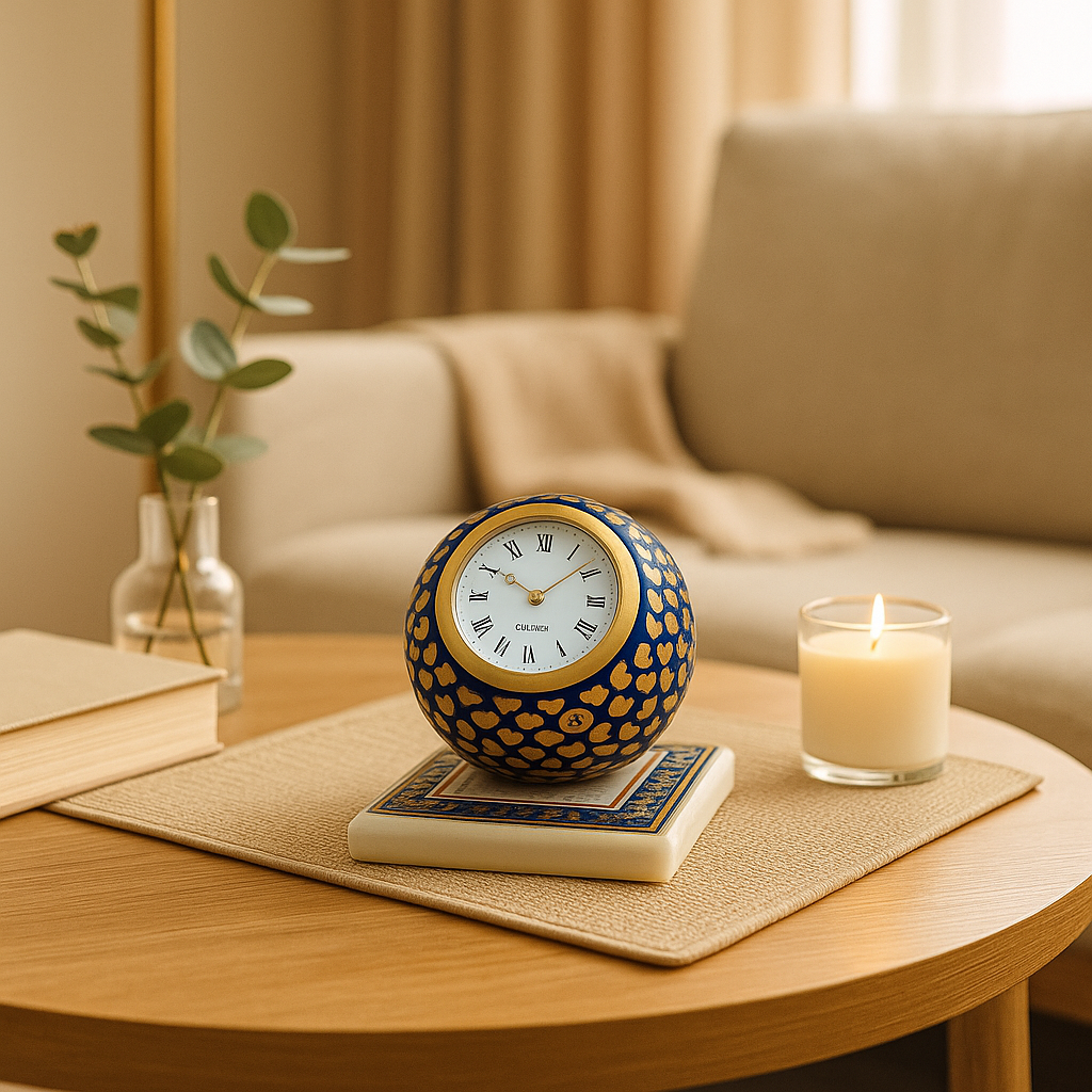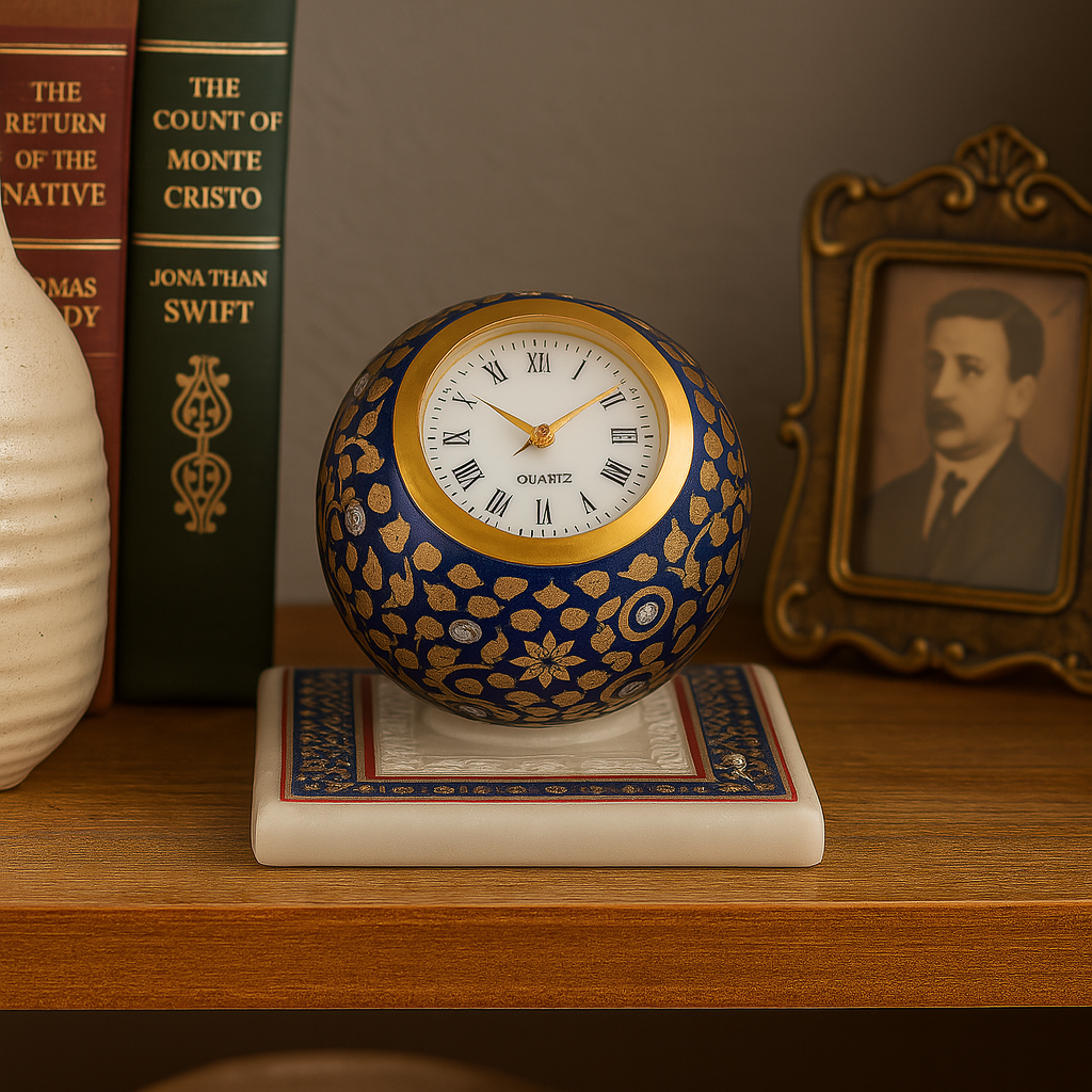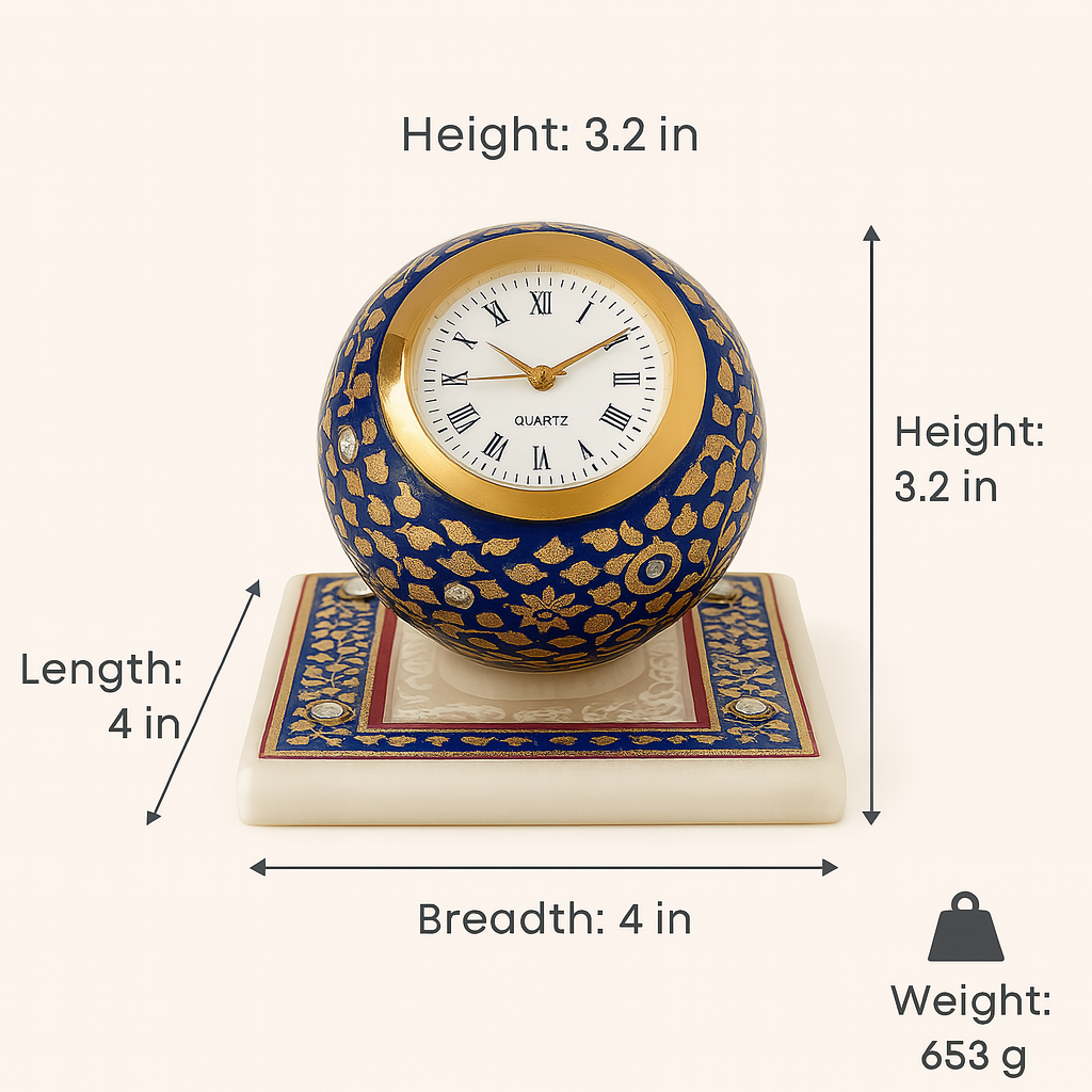 Bring home timeless elegance with the Rajwada Glory Marble Table Clock, handcrafted in royal blue and gold. Made from premium marble with intricate hand-painted motifs and sparkling stone accents, this desk clock is both functional and decorative. Perfect for your home, office, or as a thoughtful gift, it adds a touch of heritage luxury to any space.