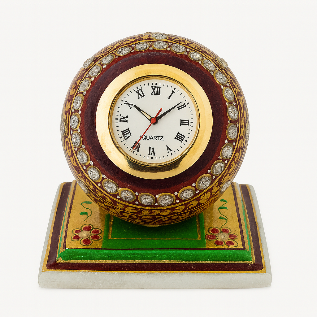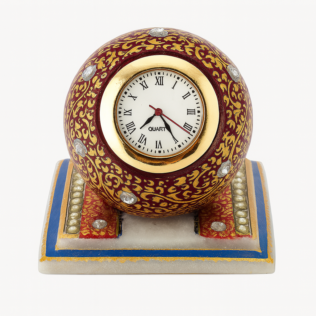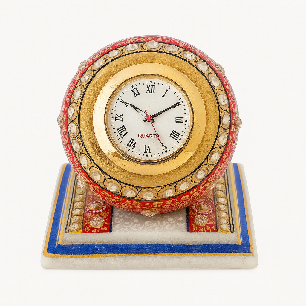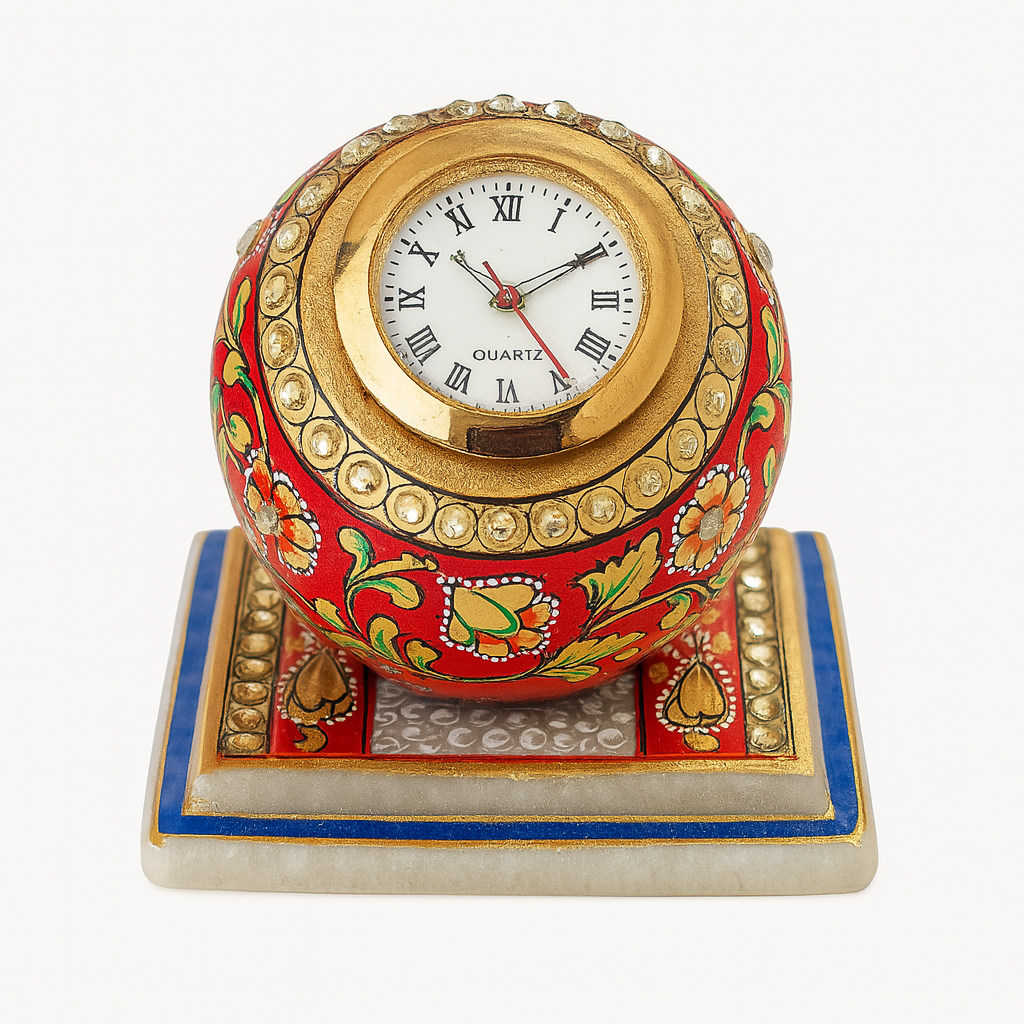 Bring home timeless elegance with the Rajwada Glory Marble Table Clock, handcrafted in royal blue and gold. Made from premium marble with intricate hand-painted motifs and sparkling stone accents, this desk clock is both functional and decorative. Perfect for your home, office, or as a thoughtful gift, it adds a touch of heritage luxury to any space.